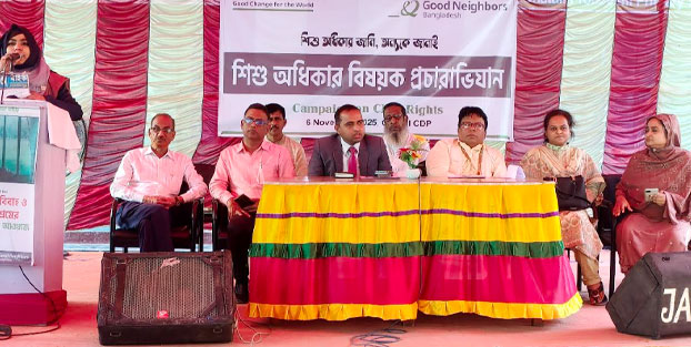 টাঙ্গাইলের ঘাটাইলে শিশু সুরক্ষা ও অধিকার সচেতনতা ক্যাম্পেইন ২০২৫ অনুষ্ঠিত। বৃহস্পতিবার (৬ নভেম্বর) বিকেলে গুডনেইবারস বাংলাদেশ ঘাটাইল সিডিপির আয়োজনে সিডিসি প্রাঙ্গণে এ শিশু সুরক্ষা ও অধিকার সচেতনতা ক্যাম্পেইন ২০২৫” অনুষ্ঠিত হয়েছে।