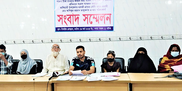 টাঙ্গাইলে পাওনা টাকা চাওয়ার জেরে এক যুবদল নেতার মিথ্যা মামলা ও ক্রমাগত হুমকীতে দিশেহারা হয়ে পড়েছে এক প্রবাসী ও তার পরিবার। প্রতিকারে মামলা দায়ের করেও সুফল না পেয়ে সংবাদ সম্মেলনে ওই যুবদল নেতার অত্যাচার থেকে রেহাই পাওয়ার আকুতি জানিয়েছেন সৌদী প্রবাসী মো. আশিকুর রহমান তালুকদার। তিনি কালিহাতী উপজেলার বাসজানা মালতি গ্রামের শাহজাহান তালুকদারের ছেলে।