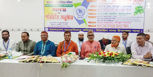 টাঙ্গাইলে বাংলাদেশ মানবাধিকার কমিশনের সদর উপজেলা শাখার নবগঠিত কার্যনির্বাহী পরিষদের শপথ ও পরিচিতি অনুষ্ঠান মঙ্গলবার বিকালে টাঙ্গাইল প্রেসক্লাব মিলনায়তনে অনুষ্ঠিত হয়েছে।অনুষ্ঠানের শুরুতে উপস্থিত নব গঠিত কার্যনির্বাহী পরিষদের সকল সদস্যকে ফুল দিয়ে বরন করা হয়।