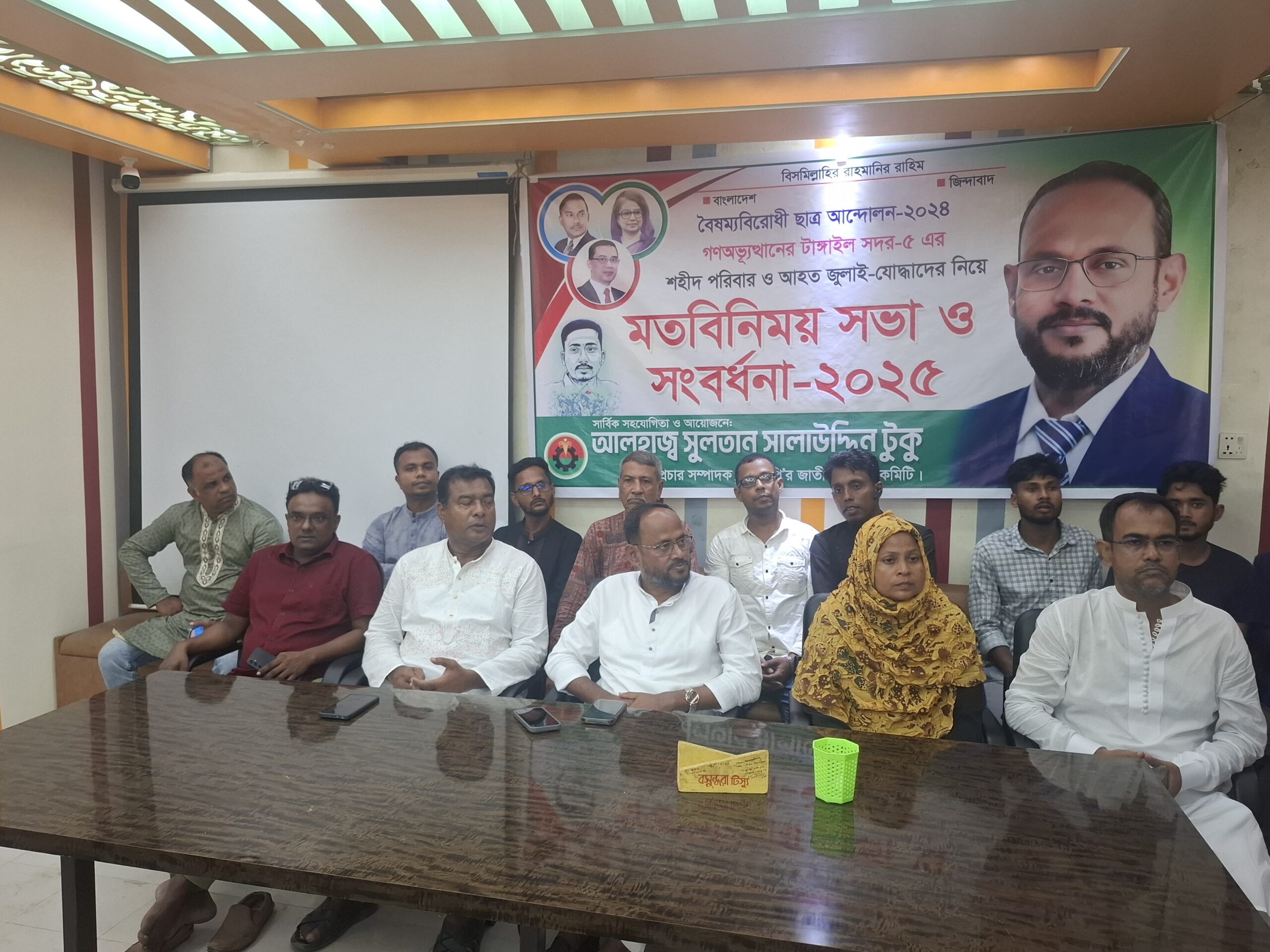 টাঙ্গাইলে বৈষম্যবিরোধী ছাত্র আন্দোলন গণঅভ্যুত্থানের শহীদ পরিবার ও আহত জুলাই যোদ্ধাদের নিয়ে মতবিনিময় সভা