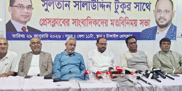 টাঙ্গাইলে সাংবাদিকদের সঙ্গে মতবিনিময় সভা করেছেন বিএনপির কেন্দ্রীয় প্রচার সম্পাদক ও টাঙ্গাইল-৫ (সদর) আসনের বিএনপির মনোনীত সংসদ সদস্য প্রার্থী সুলতান সালাউদ্দিন টুকু। বৃহস্পতিবার (২৯ জানুয়ারি) দুপুরে টাঙ্গাইল প্রেসক্লাব মিলনায়তনে এ সভা অনুষ্ঠিত হয়।