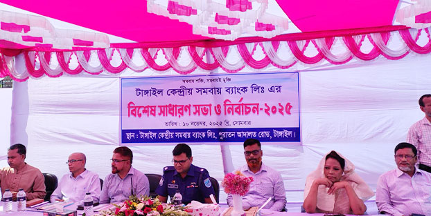 সোমবার টাঙ্গাইল কেন্দ্রীয় সমবায় ব্যাংক লিমিটেডের বিশেষ সাধারণ সভা ও নির্বাচন-২০২৫ টাঙ্গাইল শহরের পুরাতন আদালত রোডের টাঙ্গাইল কেন্দ্রীয় সমবায় ব্যাংক লিমিটেডের তৃতীয় তলায় অনুষ্ঠিত হয়েছে। নির্বাচিত হওয়ার পর শুভেচ্ছা বক্তব্যে রাহেলা জাকির বলেন, সমবায়ীদের সম্পদ রক্ষা করা হবে এবং তা আরো বৃদ্ধি করার চেষ্টা করা হবে। এই পরিষদ সততার সাথে কাজ করবে। এই পবিত্র আমানত রক্ষা করা হবে। সমবায়ই পারে রাষ্ট্রের অর্থনীতিতে অংশগ্রহণ করতে। রাষ্ট্রের যে অর্থের চাকা ঘুরে সেটা সমবায় সমিতির জন্য ঘুরে বলে তিনি উল্লেখ করেন।