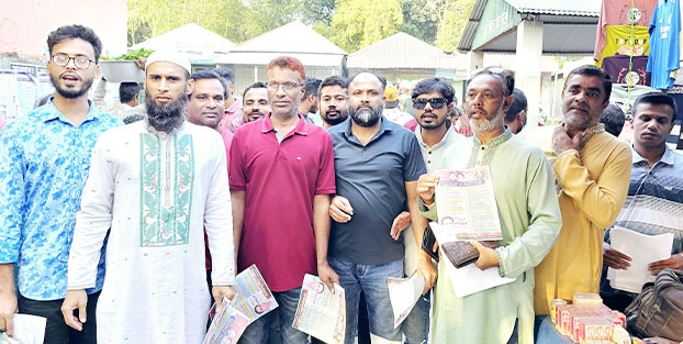 সোমবার (৩ নভেম্বর ) বিকেলে টাঙ্গাইল সদর উপজেলার বাঘিল ইউনিয়নের জুগনির হাটে সর্বসাধারণের মাঝে লিফলেট বিতরণ করেন।