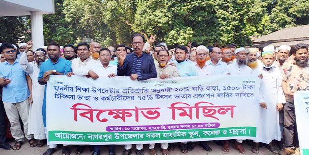 শিক্ষা উপদেষ্টার প্রতিশ্রুতি অনুযায়ী এমপিওভুক্ত শিক্ষকদের ভাতার প্রজ্ঞাপন জারির দাবিতে শিক্ষক-কর্মচারীদের শান্তিপূর্ণ অবস্থান কর্মসূচিতে হামলার প্রতিবাদে টাঙ্গাইলের নাগরপুরে বিক্ষোভ মিছিল অনুষ্ঠিত হয়েছে।