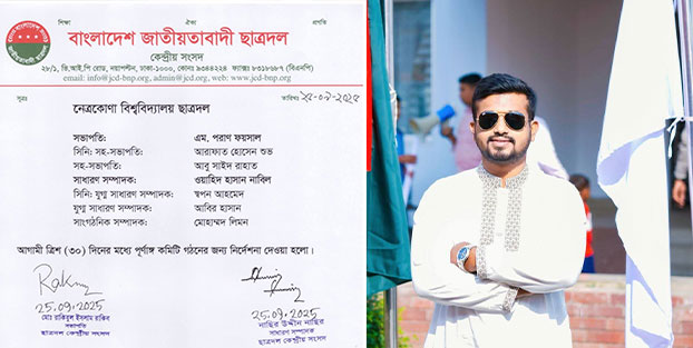 বাংলাদেশ জাতীয়তাবাদী ছাত্রদল নেত্রকোণা বিশ্ববিদ্যালয়ে সাত সদস্য বিশিষ্ট আংশিক কমিটি ঘোষণা করা হয়েছে। উক্ত কমিটিতে এম. পরাণ ফয়সালকে সভাপতি এবং ওয়াহিদ হাসান নাবিলকে সাধারণ সম্পাদক হিসেবে মনোনীত করা হয়েছে।