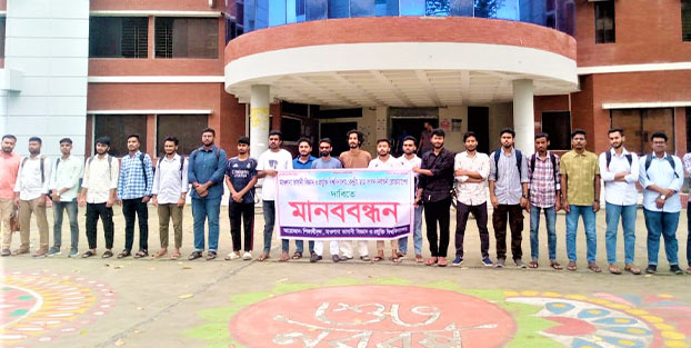ভাসানী বিশ্ববিদ্যালয়ে ছাত্র সংসদ নির্বাচনের রোডম্যাপের দাবিতে মানববন্ধন