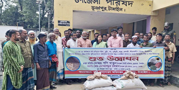 টাঙ্গাইলের ভূঞাপুরে ২০২৪-২৫ অর্থ বছরের রবি মৌসুমে শতভাগ স্বচ্ছতার মাধ্যমে গম, ভুট্টা, সরিষা, সূর্যমুখী, শীতকালীন পেঁয়াজ, চিনাবাদাম, মসুর ও খেসারি ফসলের উৎপাদন বৃদ্ধির লক্ষ্যে ৬ হাজার ৬৭০ জন কৃষকের মাঝে বিনামূল্যে বীজ ও সার বিতরণ করা হয়েছে।