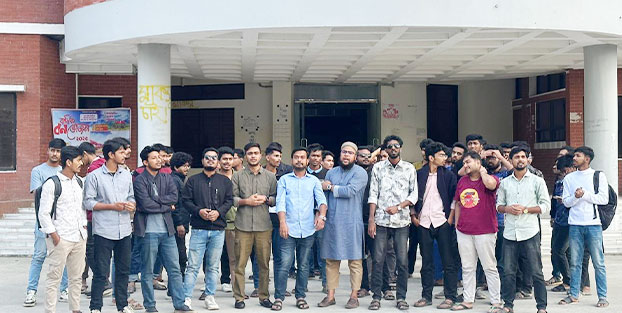 আজ ১৭ই ডিসেম্বর ২০২৫,বুধবার বিশ্ববিদ্যালয় ক্যাম্পাসে আয়োজিত এ বিক্ষোভে উপস্থিত ছিলেন শাখা ছাত্রদলের সভাপতি সাগর আহমেদ ও সাধারণ সম্পাদক সাজিদ ইসলাম দিপুসহ সংগঠনের অন্যান্য নেতাকর্মী এবং সাধারণ শিক্ষার্থীরা।