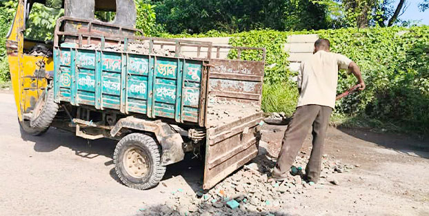 সন্তোষ-টাঙ্গাইল সড়কের বেহাল দশায় ভোগান্তি, ব্যক্তিগত উদ্যোগে মেরামতে ছাত্রদল নেতারা